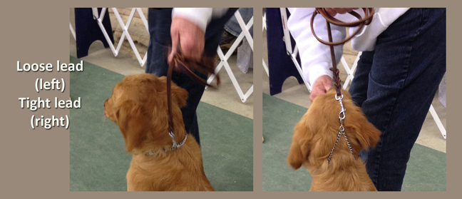 In the first part of training for a dog, before the dog has learned what you want him/her to do, it is tempting to try to hold the dog in the place you want him/her to be — pulling on the leash so there is constant pressure on the dog’s collar. We call it a ‘tight lead.’ That’s the wrong approach.
