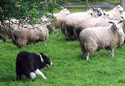 The father of our Border Collies demonstrated his ‘eye’ and stealth for us in rounding up sheep and bringing them to us in a corner of the field. https://youtu.be/yay2IY29VVs
