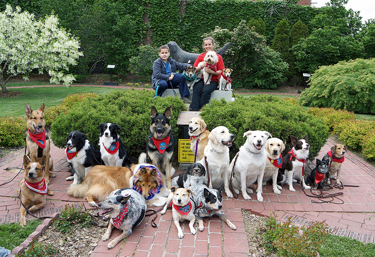 The group picture in the Jim the Wonder Dog park in Marshall.