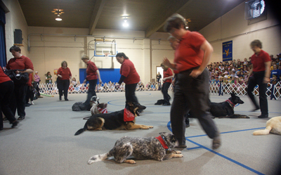 Team members create dance routines with their dogs in the tradition of free-style obedience, develop tricks and unusual moves choreographed to music.